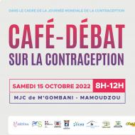 Dans la continuité des actions de la journée mondiale de la contraception, avec cette année, à Mayotte, différents ateliers débat proposés tout au long de la semaine, un café débat aura lieu le samedi 15 octobre 2022 à Mamoudzou.